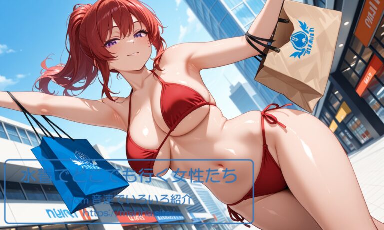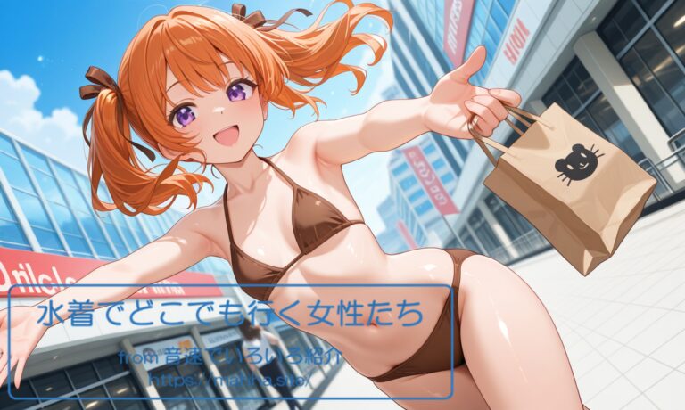 今回の「水着でどこでも行く女性たち」はどんな画像になのでしょうか。