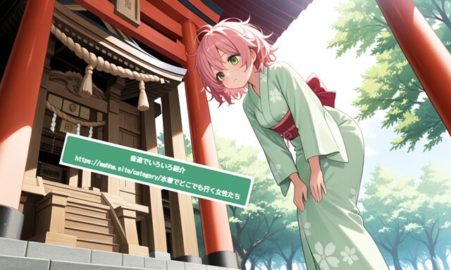 daytime, shrine torii, hatsumode, light blue, kimono, bowing