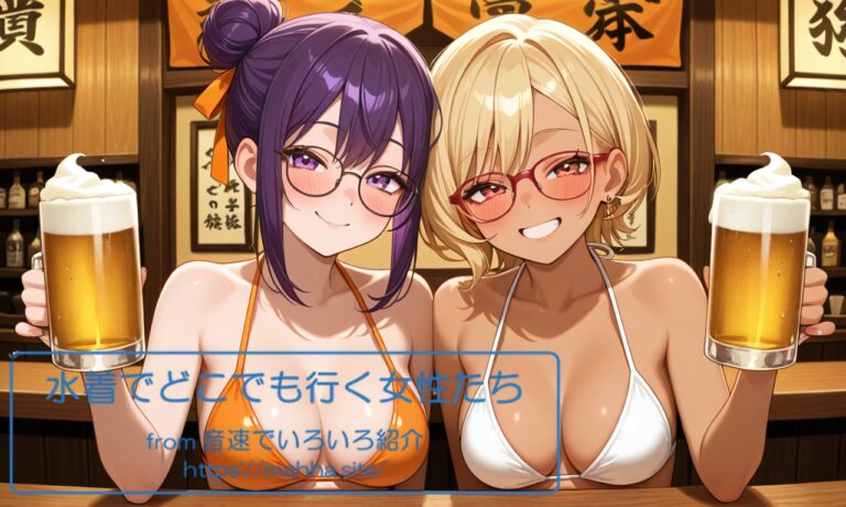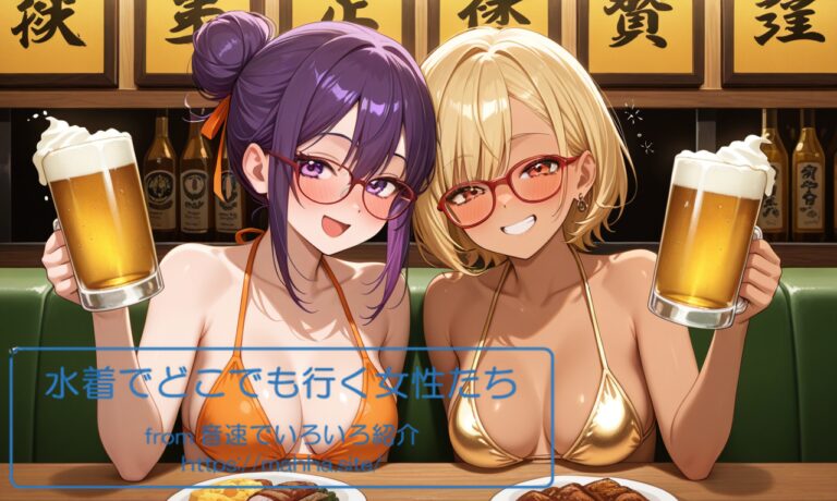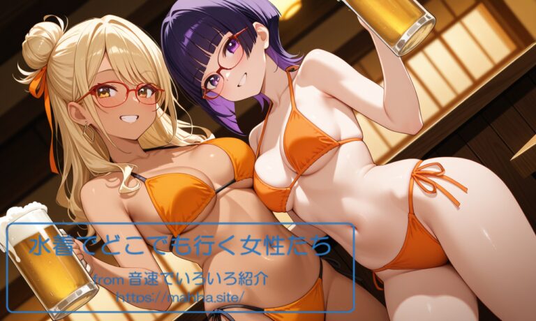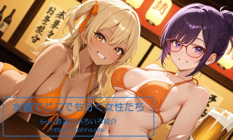 今回の「水着でどこでも行く女性たち」はどんな画像になのでしょうか。